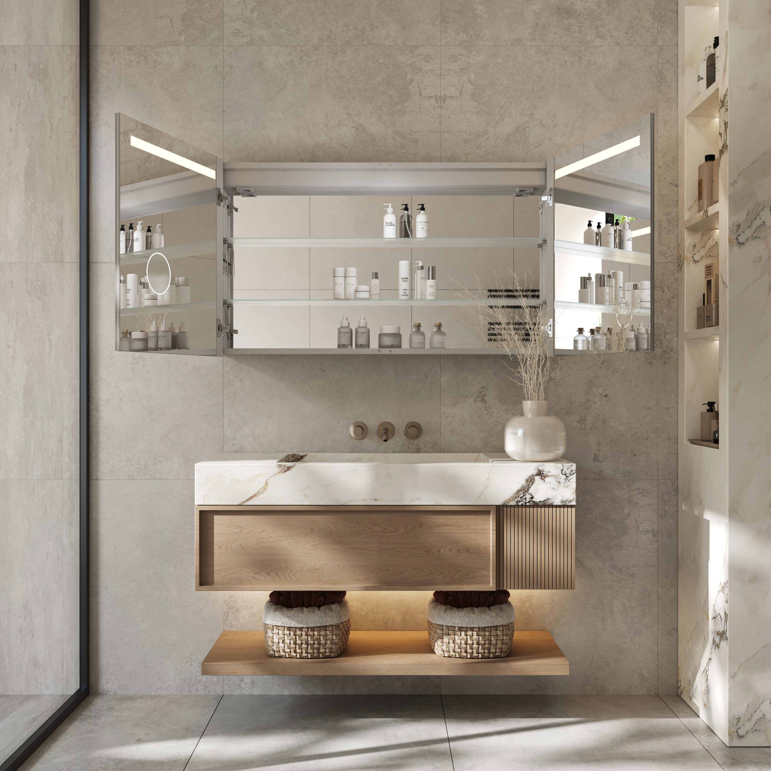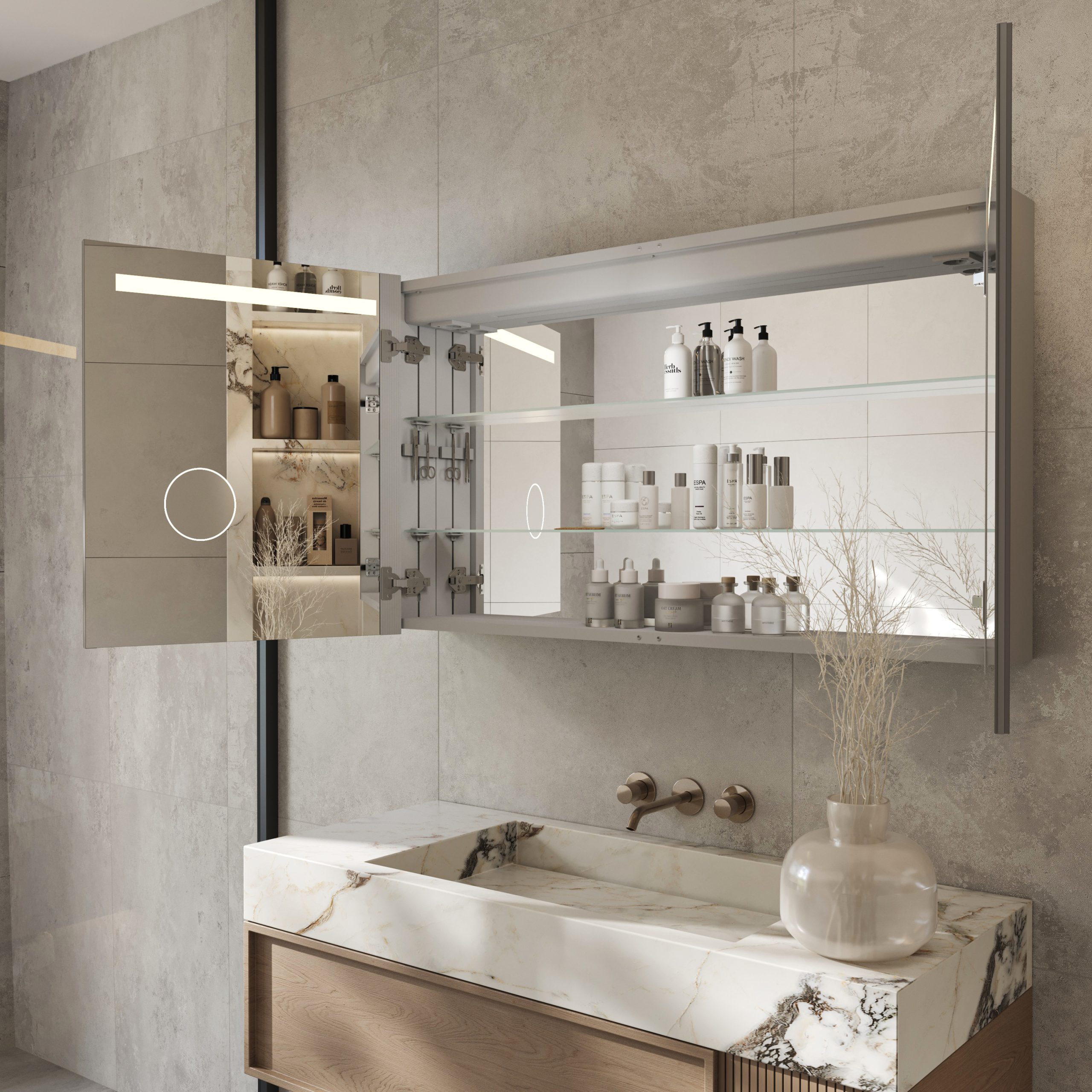 - Inclusief magnetische make-up spiegel met verlichting aan de binnenzijde van de linker deur