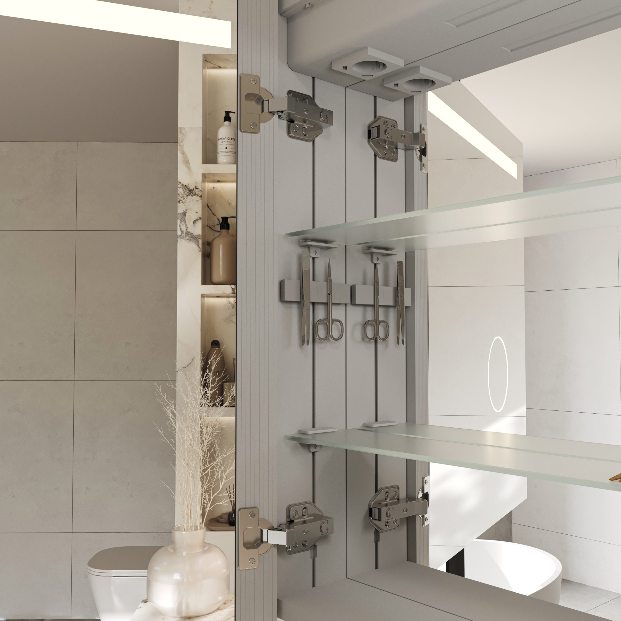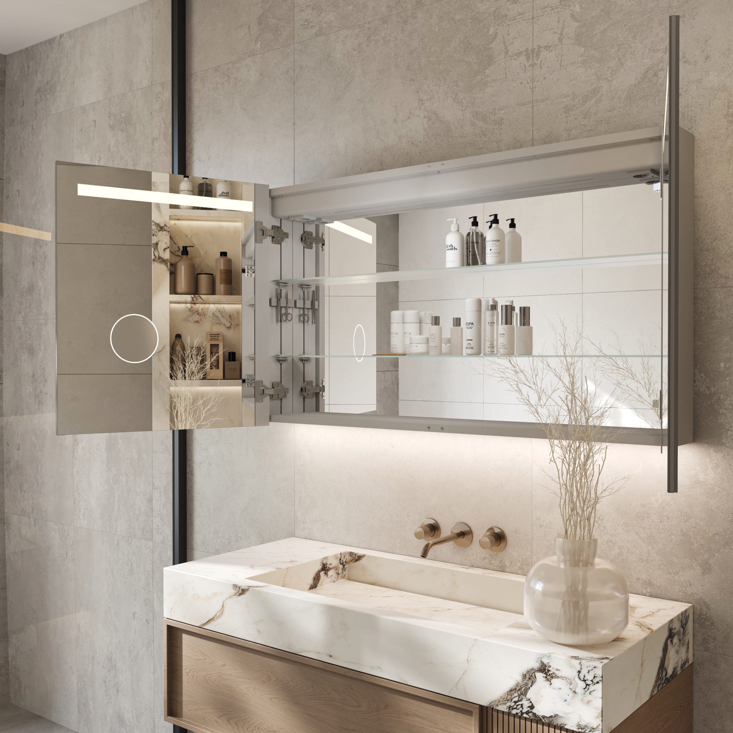 - Inclusief magnetische make-up spiegel met verlichting aan de binnenzijde van de linker deur