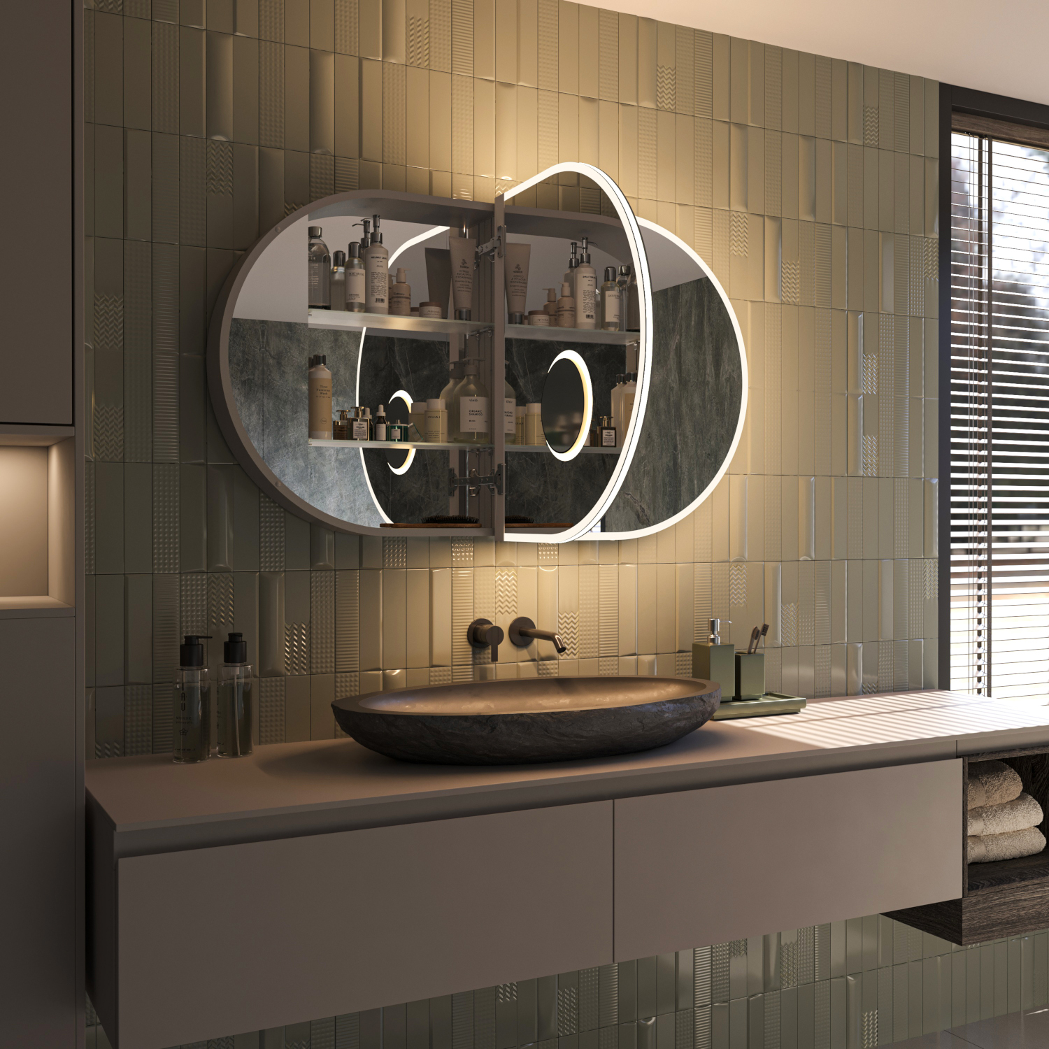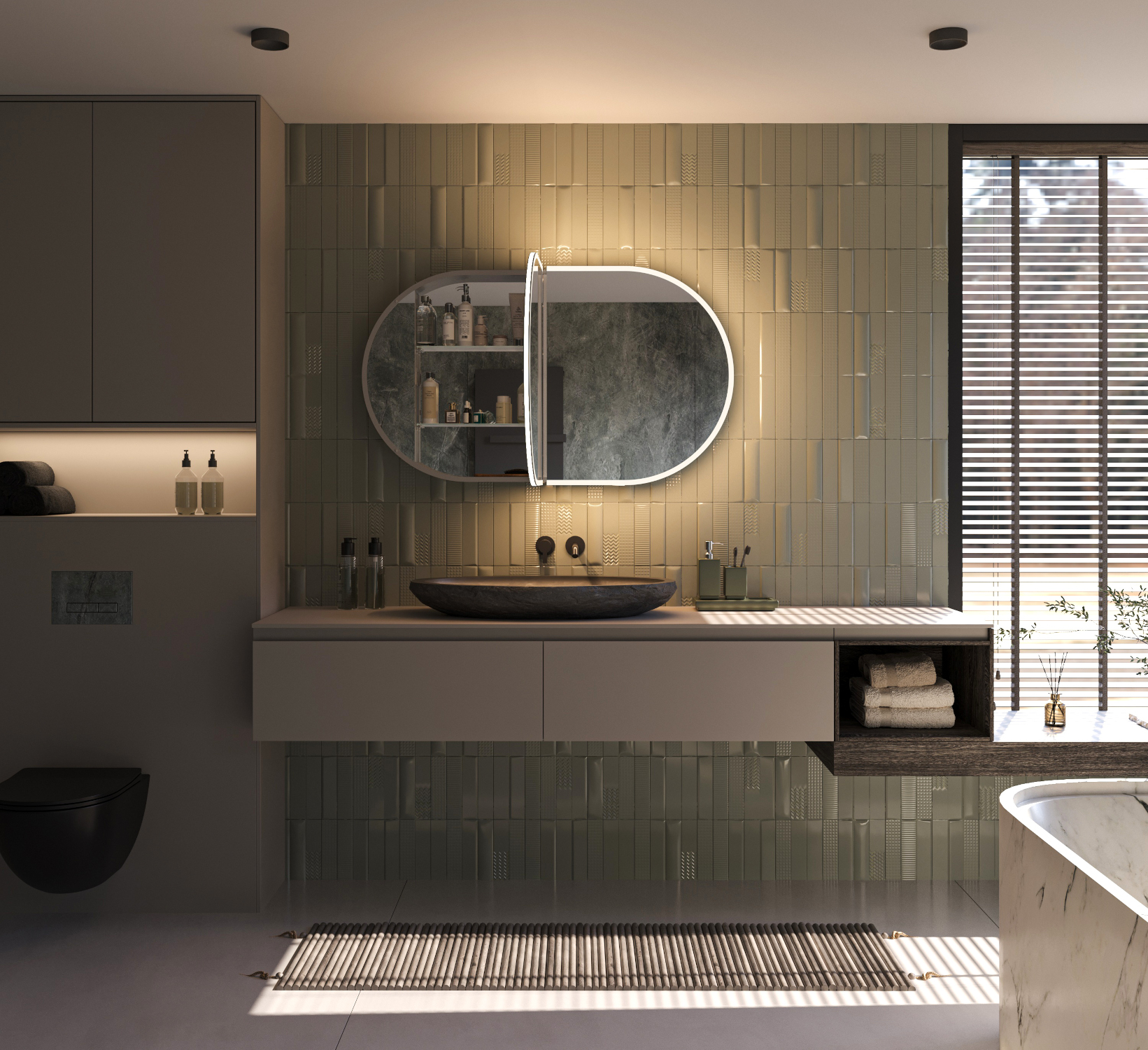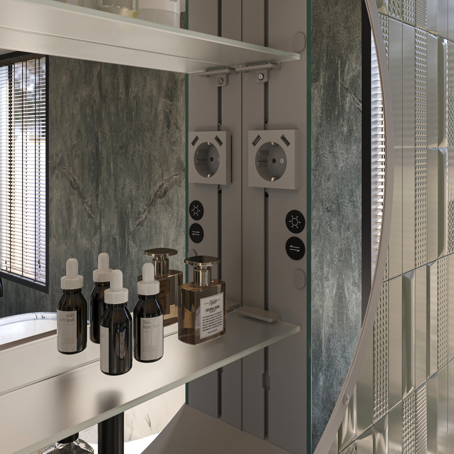 - Switch: sensor switch centred on the underside of the mirror cabinet