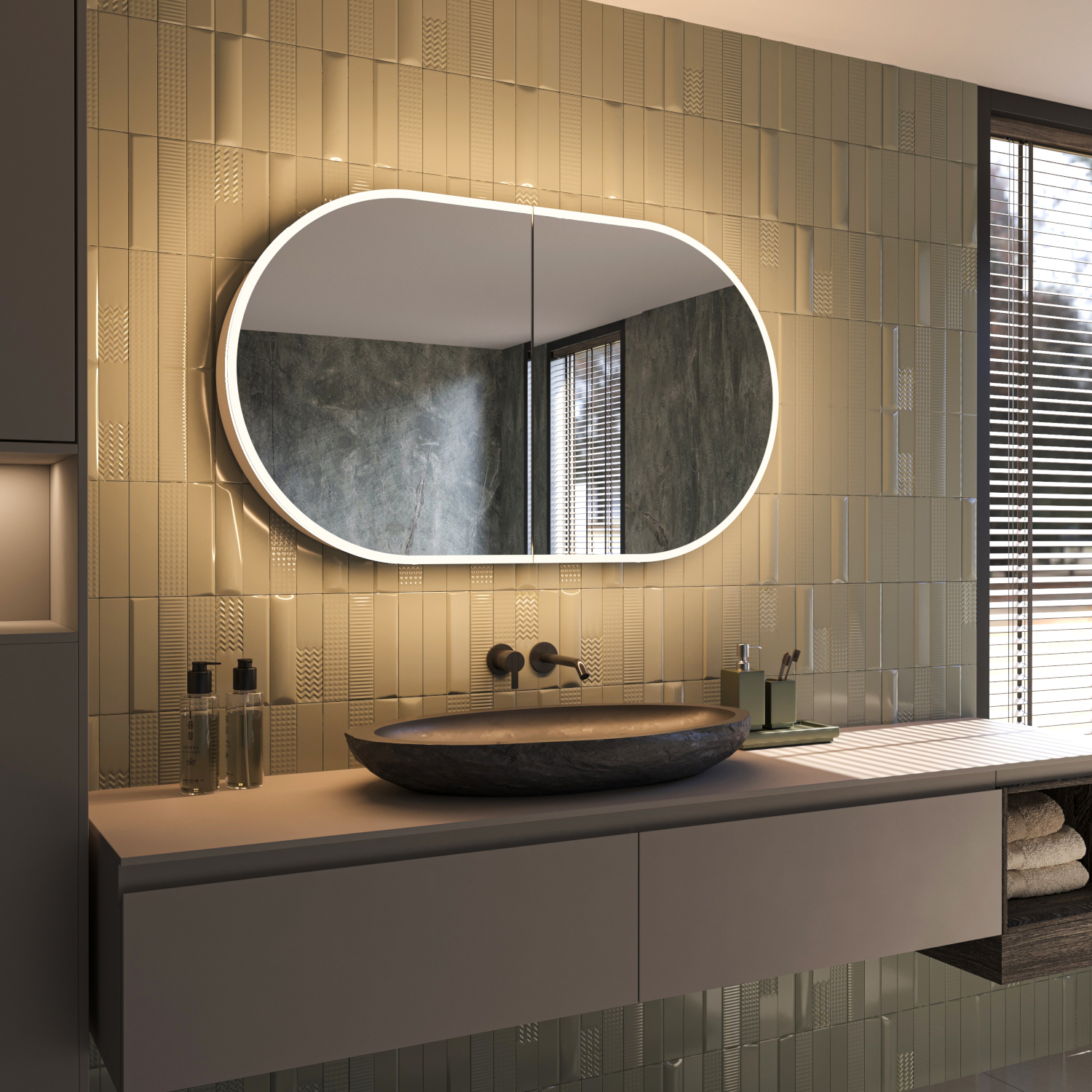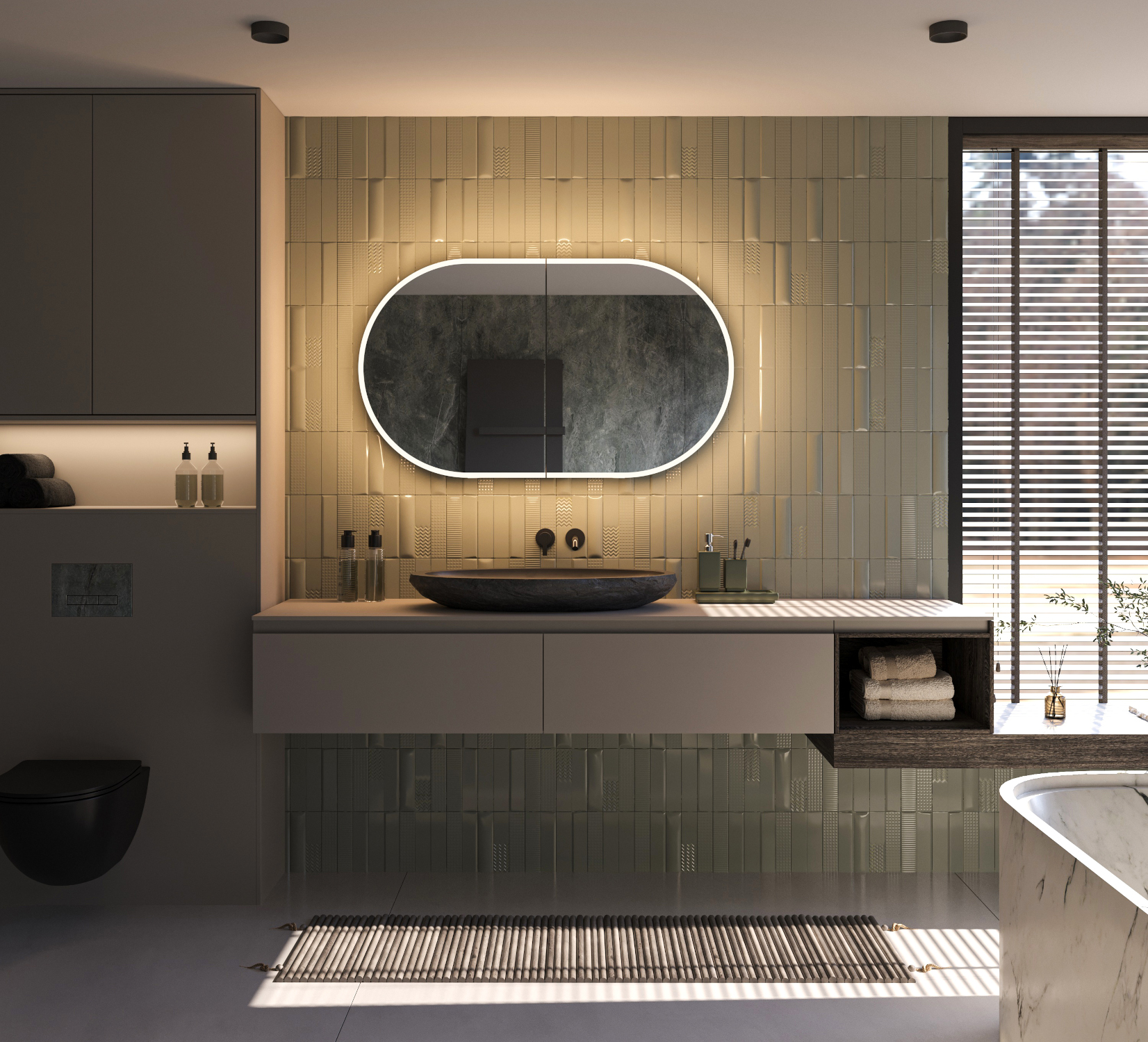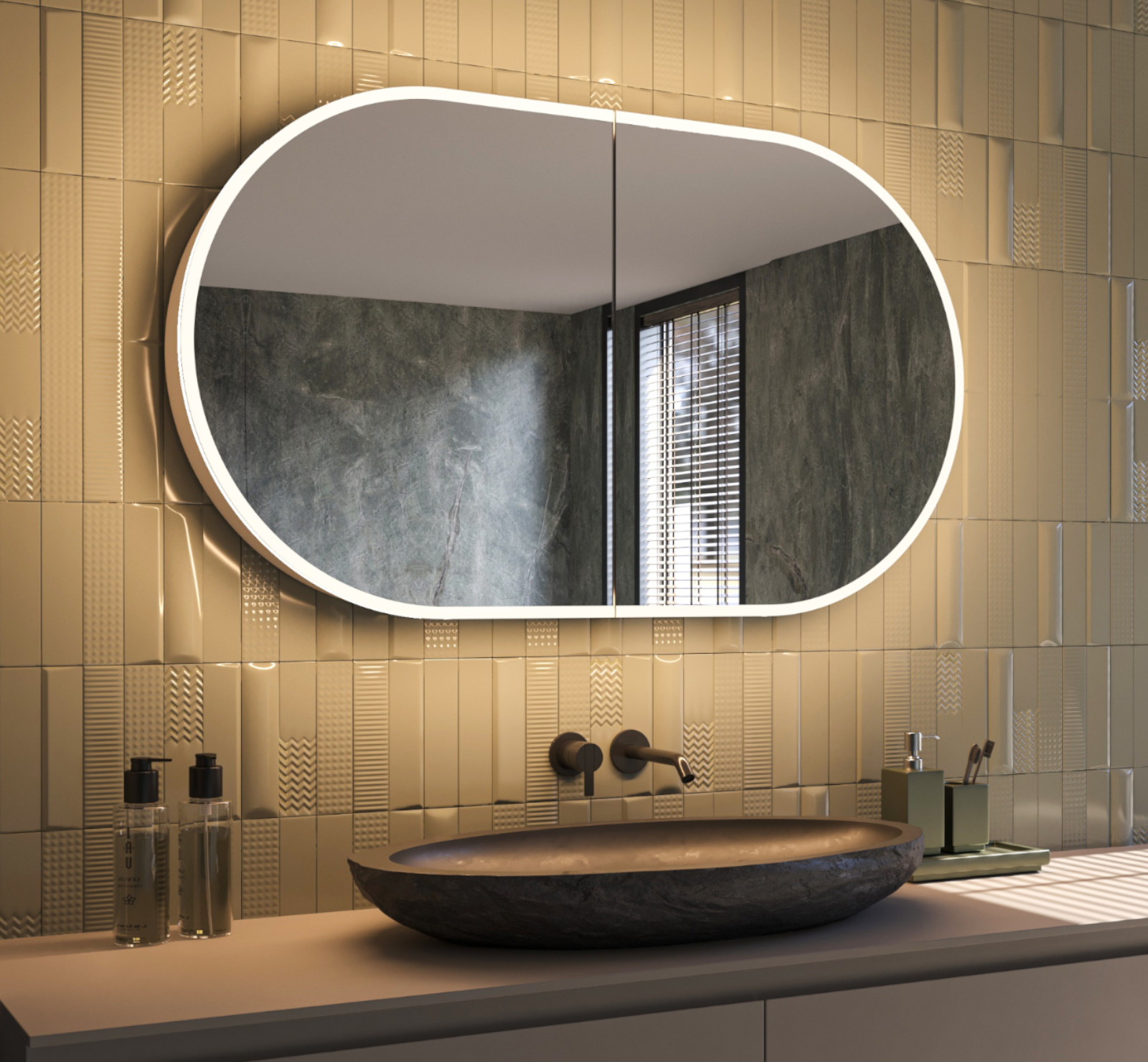 - Switch: sensor switch centred on the underside of the mirror cabinet