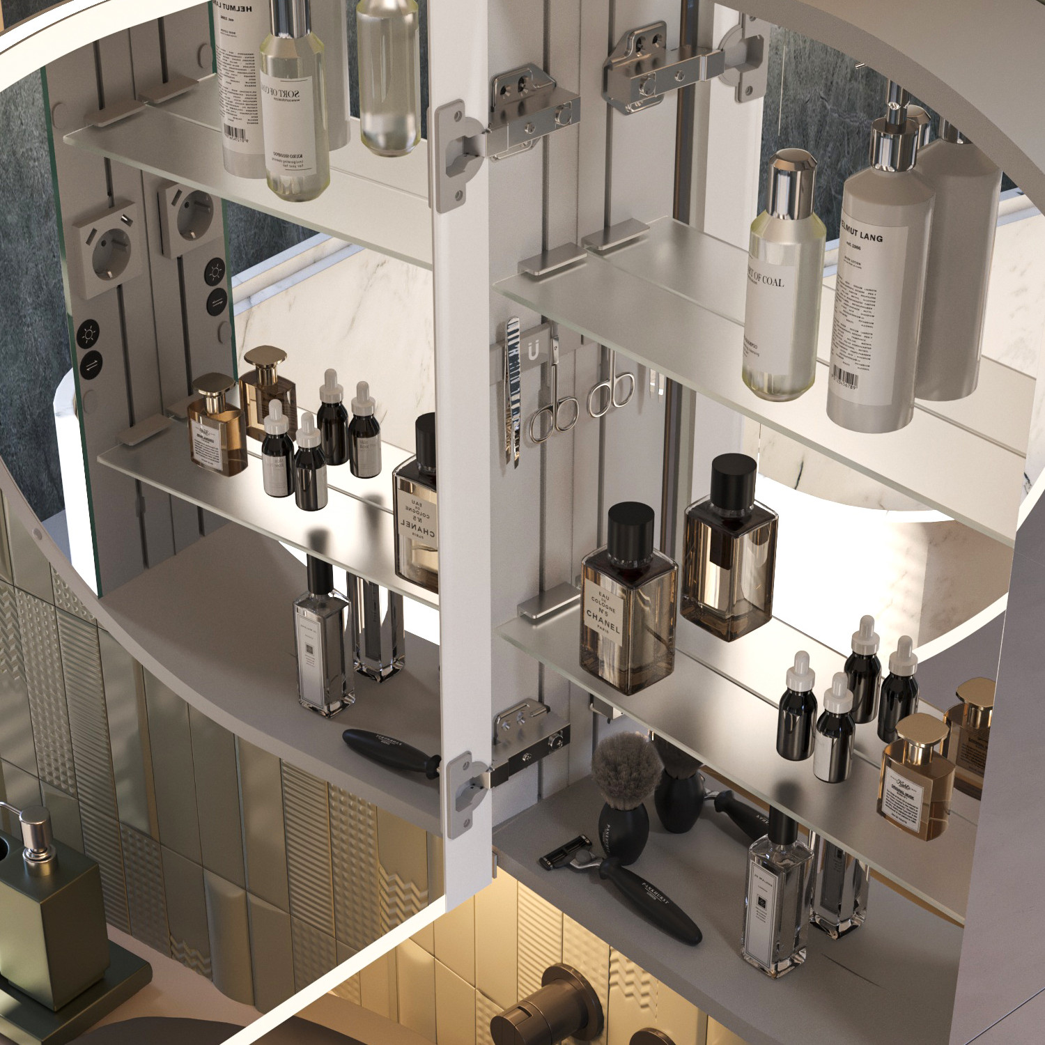 - Lighting: direct lighting all round, integrated in the doors, positioned against the mirror edge