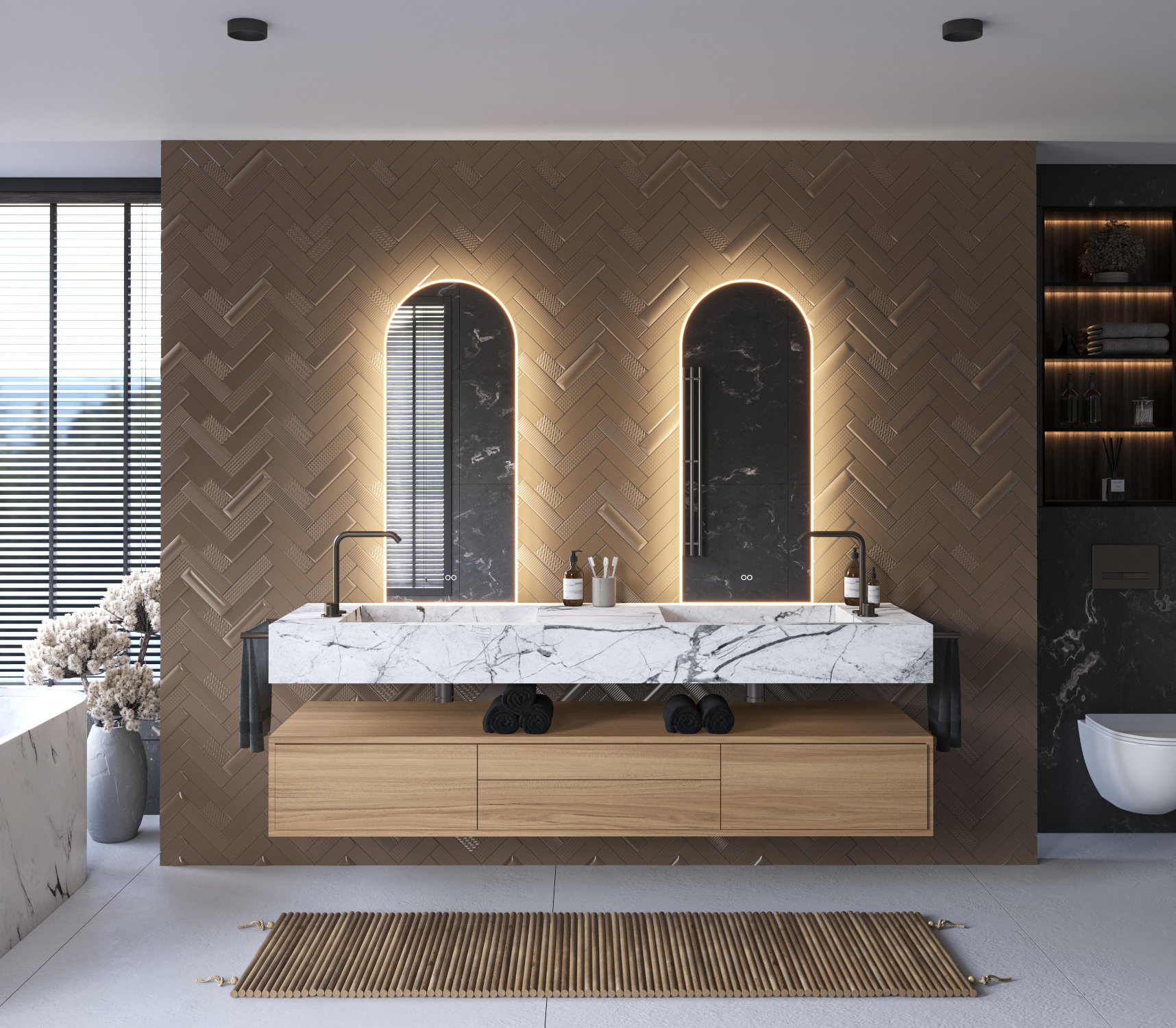 - Includes double touch switch in the mirror, equipped with colour change 2700K-6400K and dimming function