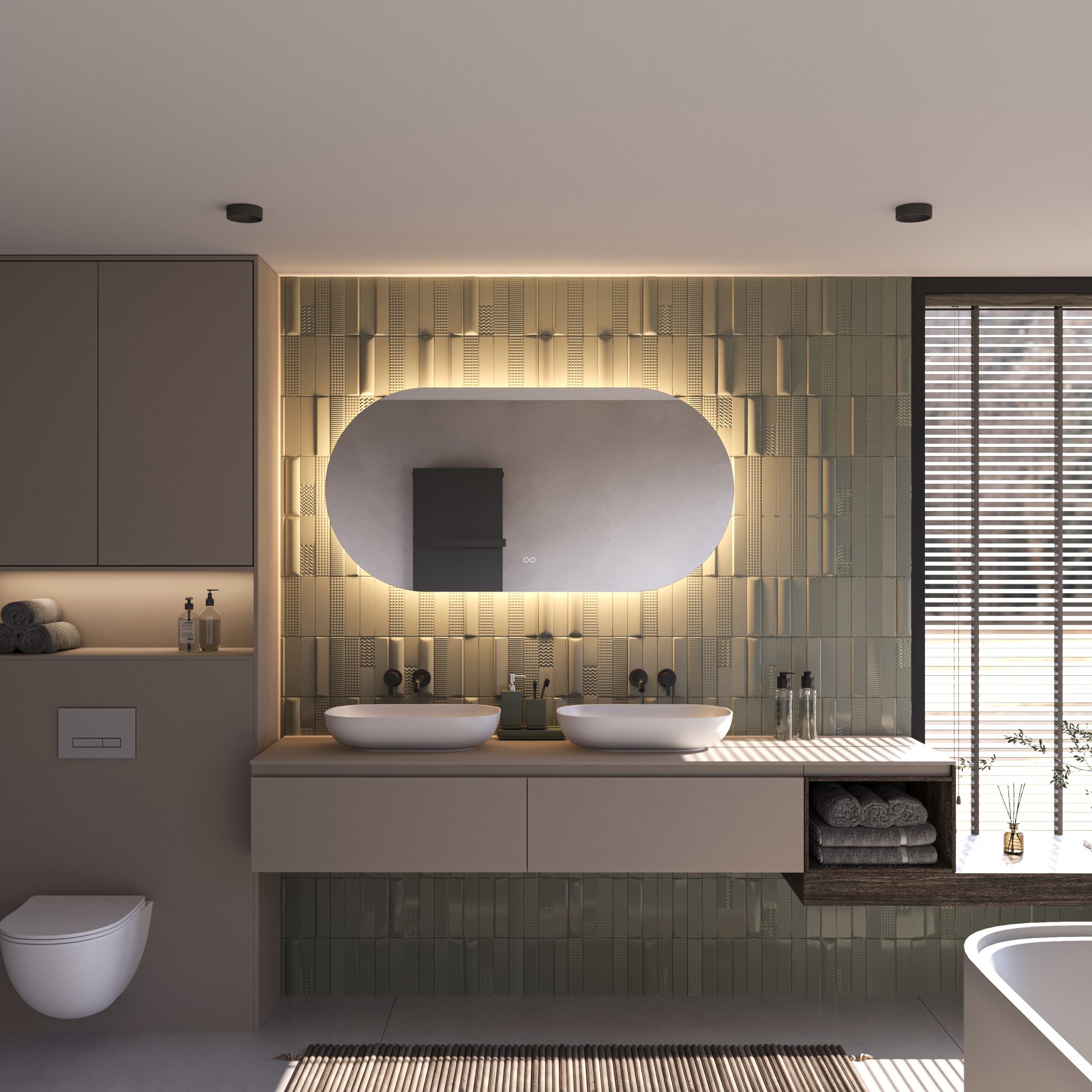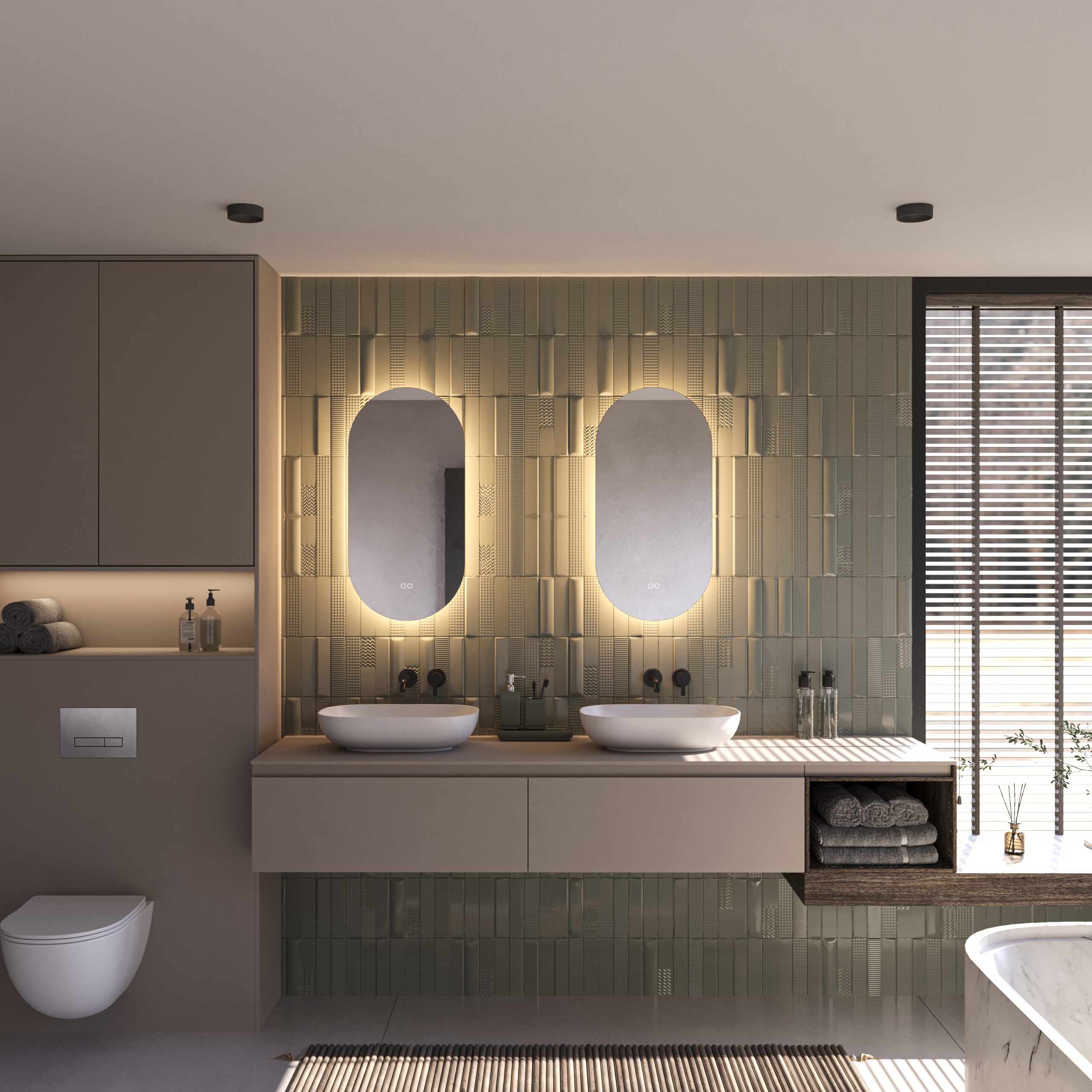 - Inclusief dubbele touch schakelaar in de spiegel, uitgevoerd met kleurenwissel 2700K-6400K en dimfunctie