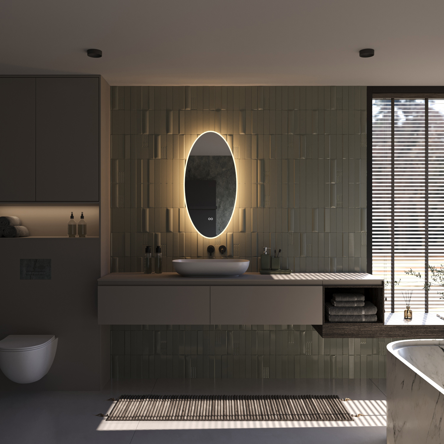 - Inclusief dubbele touch schakelaar in de spiegel, uitgevoerd met kleurenwissel 2700K-6400K en dimfunctie