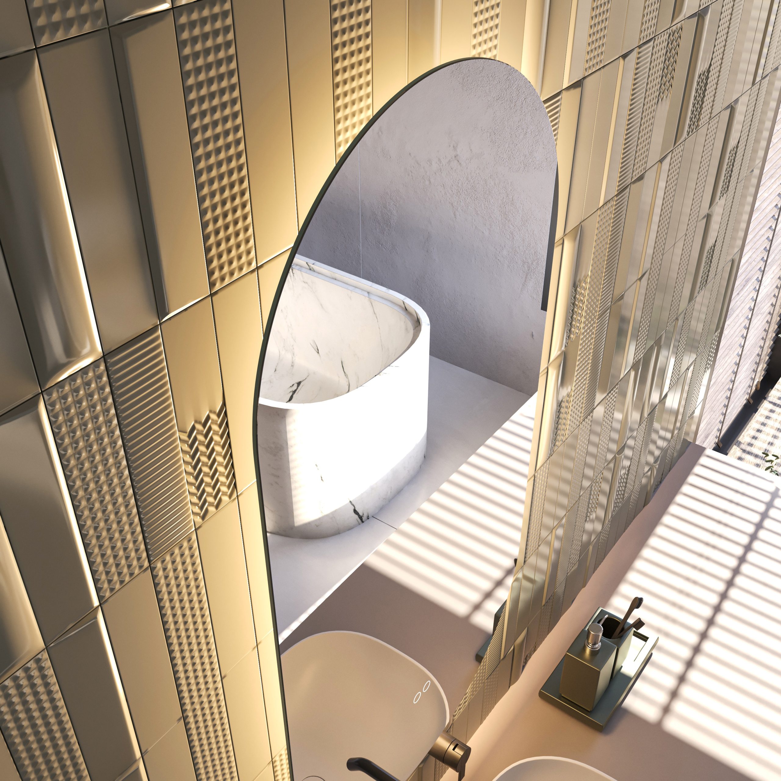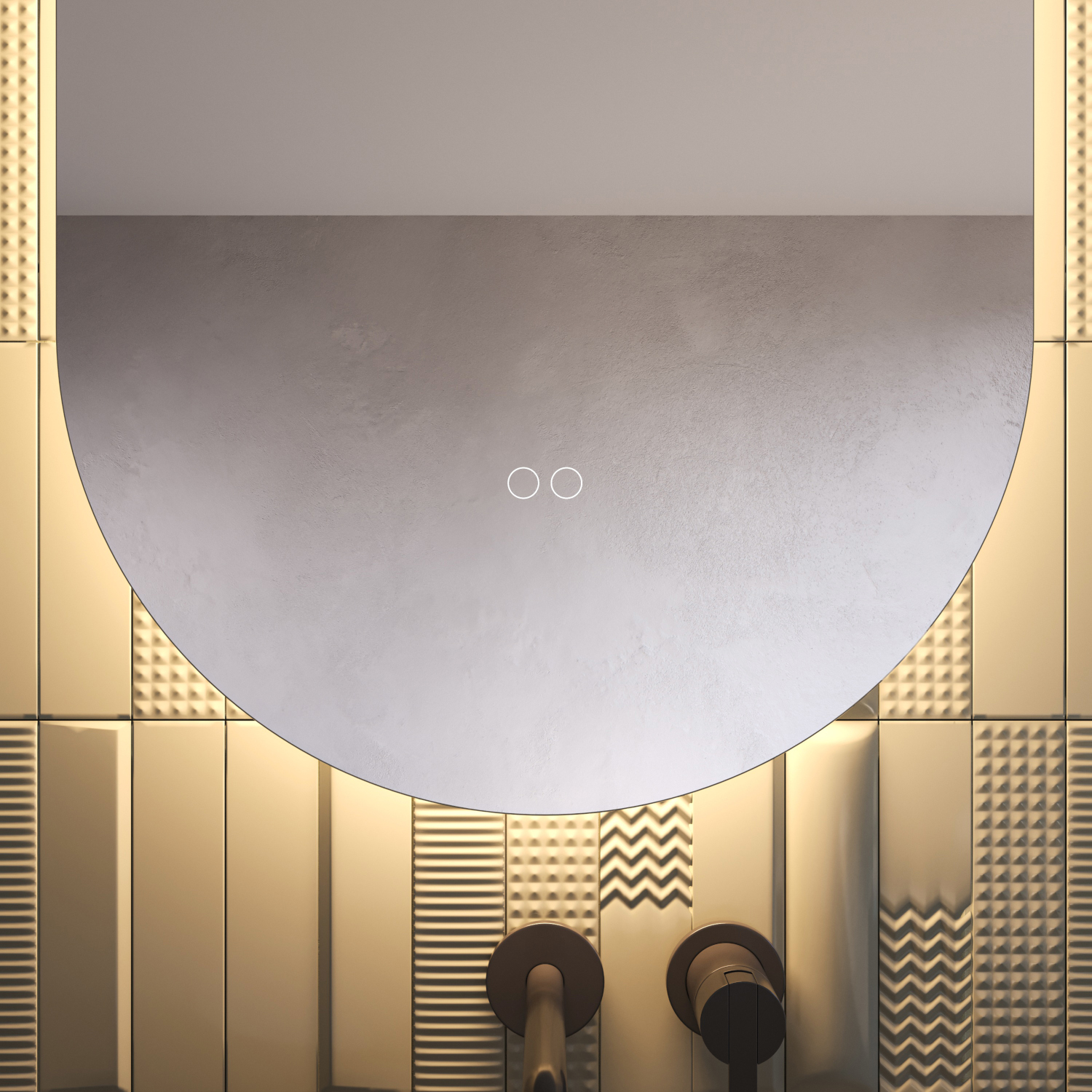 - Verlichting: indirecte verlichting rondom, 24V 120 LEDs/m, schijnt rondom vanachter de spiegel sfeervol over de wand, lichtkleur traploos instelbaar van 2700K tot 6400K, dimbaar