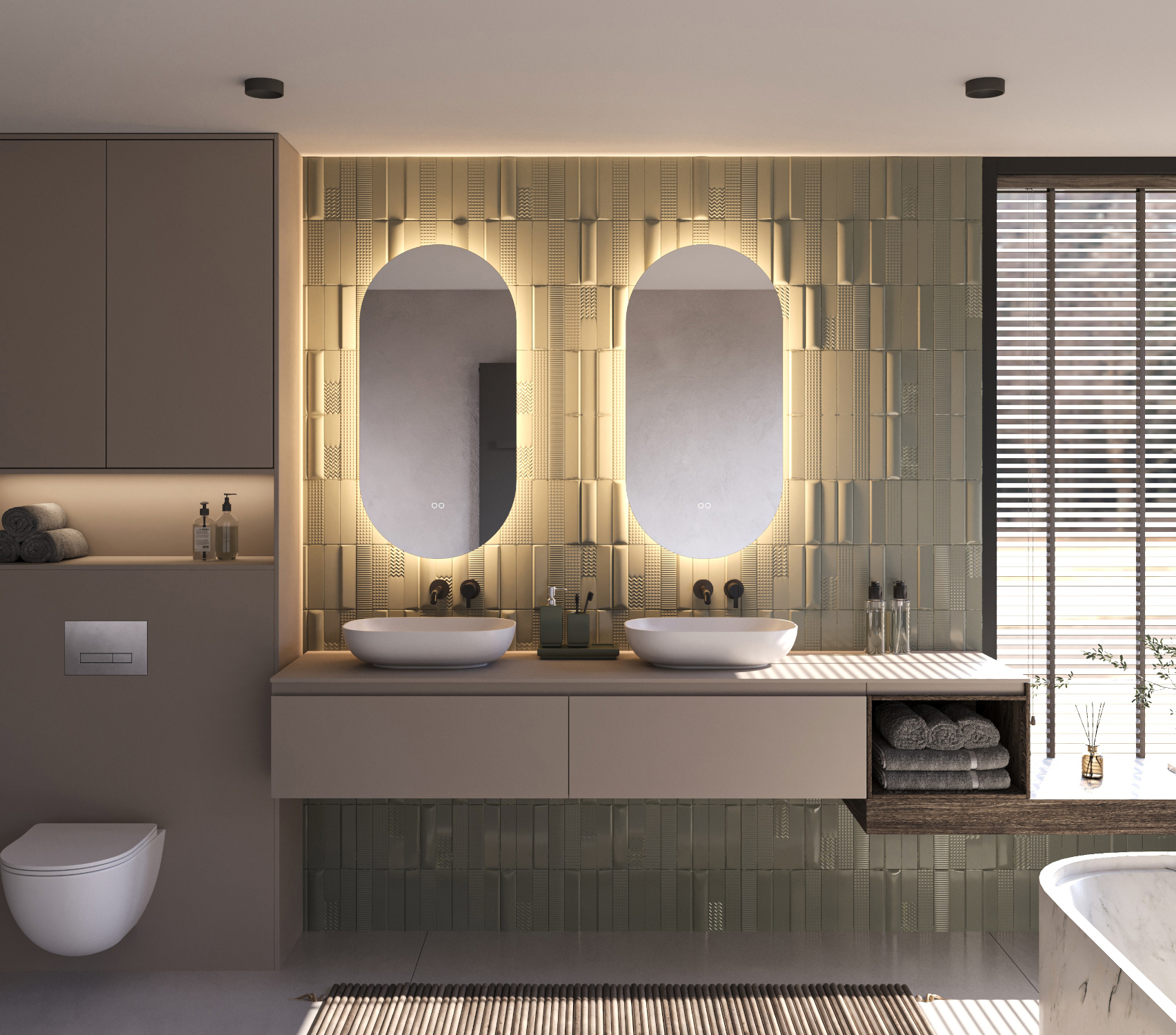 - Inclusief dubbele touch schakelaar in de spiegel, uitgevoerd met kleurenwissel 2700K-6400K en dimfunctie