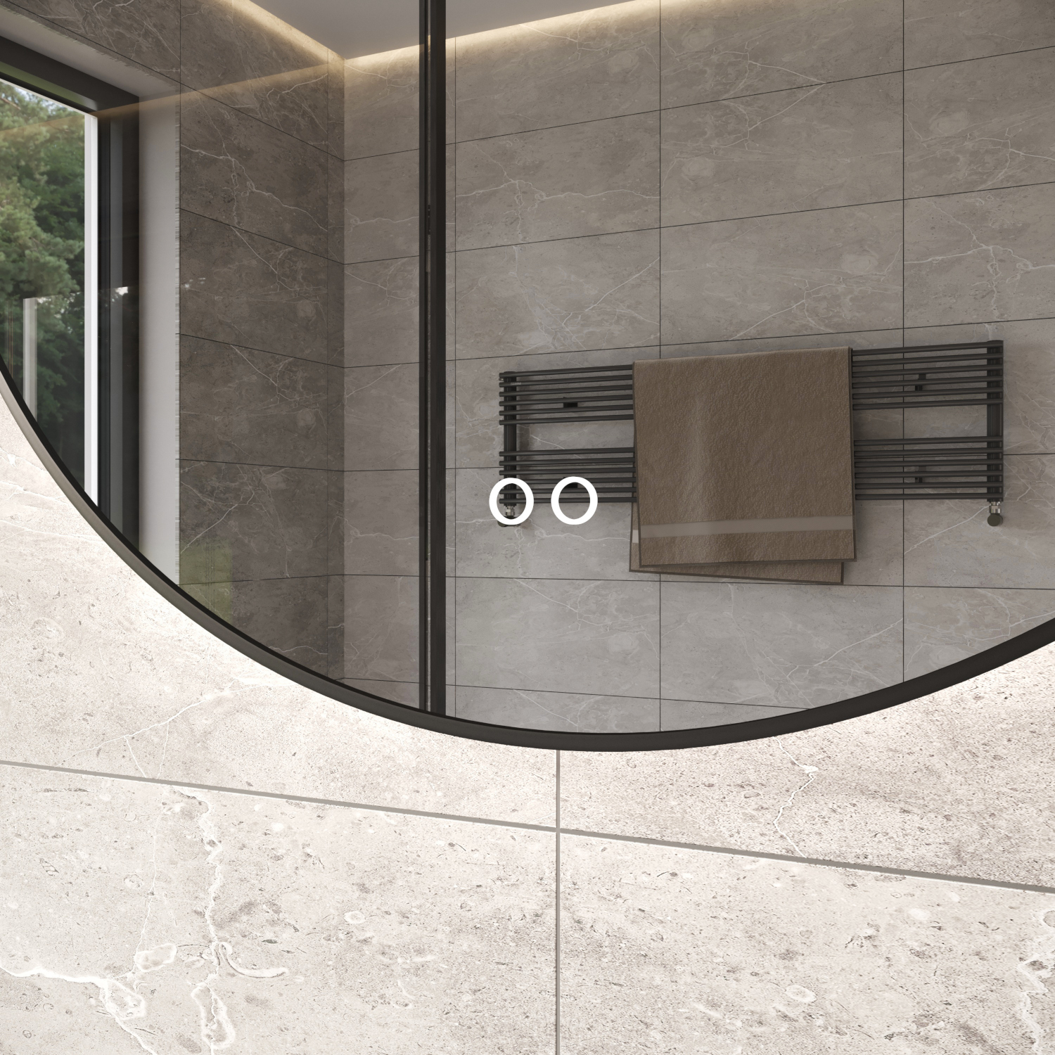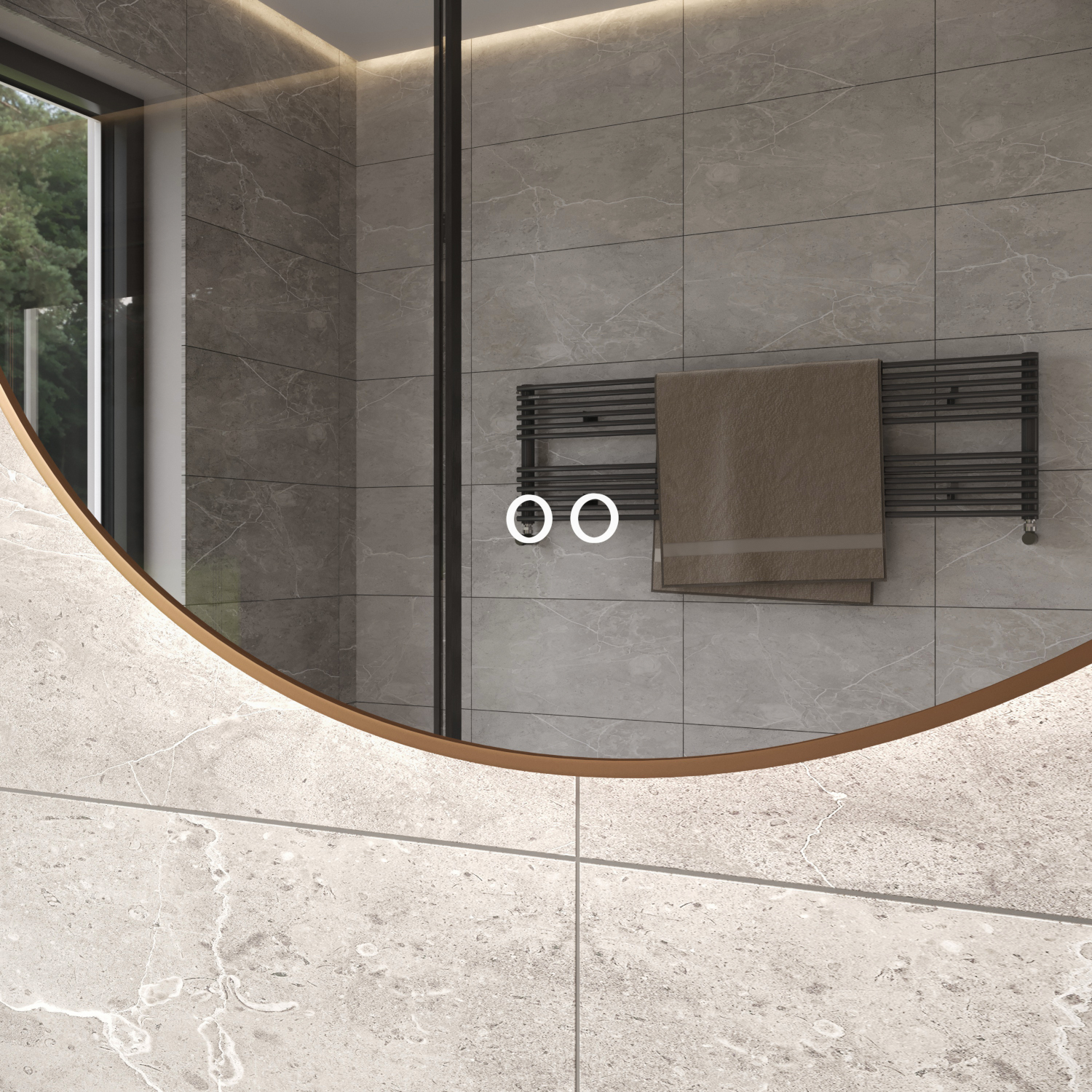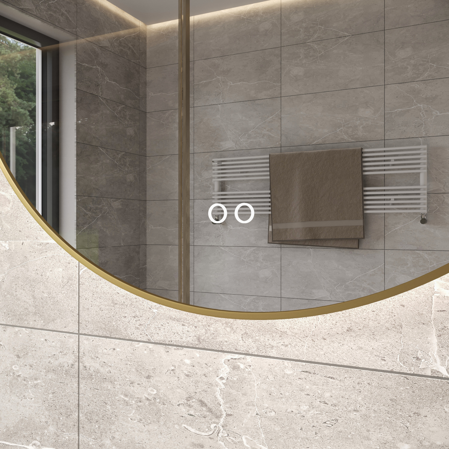 - Verlichting: indirecte verlichting, 24V 120 LEDs/m, schijnt rondom vanachter de spiegel over de wand, lichtkleur traploos instelbaar van 2700K tot 6400K